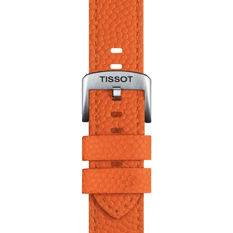 The watch is paired with a striking orange leather strap with a pin buckle, reminiscent of a basketball’s texture, adding a unique sporty character. With a water resistance of 30 ATM (300 m), it is ideal for diving and demanding water sports.