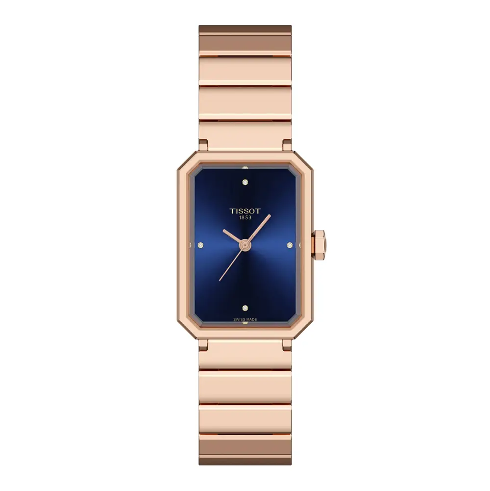 The Tissot SRV 30mm offers an elegant reinterpretation of a 1970s design in a refined modern form. Its 30 × 21.8 mm rectangular stainless-steel case with yellow-gold PVD coating gives the watch a luxurious, jewellery-like presence, while the sapphire crystal and 5-bar water resistance ensure durability for everyday wear.