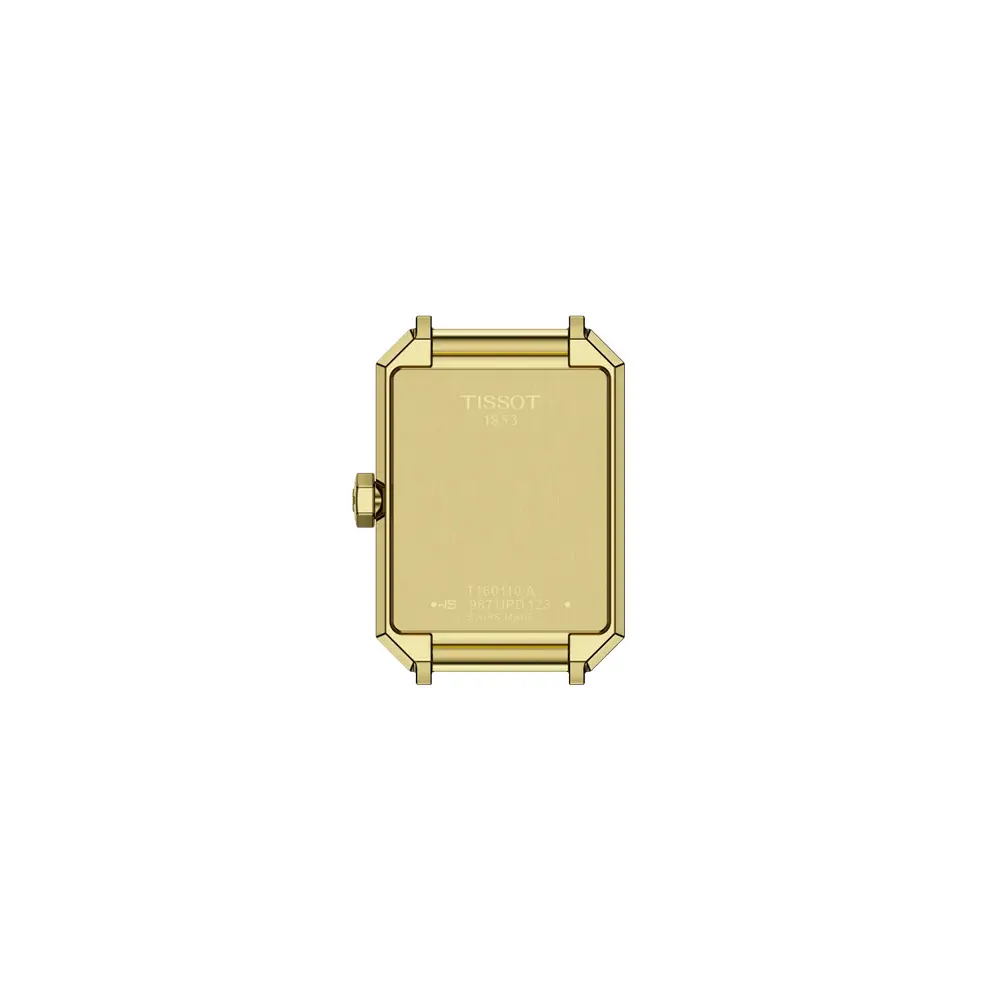 The Tissot SRV T160.110.36.126.00 is an elegant ladies’ timepiece inspired by Art Deco aesthetics, combining feminine design with precise Swiss craftsmanship. Its 316L stainless-steel case with yellow-gold PVD coating offers a luxurious, timeless look, while the sapphire crystal ensures excellent scratch resistance. The watch also provides 50 m (5 bar) water resistance, making it suitable for everyday wear.