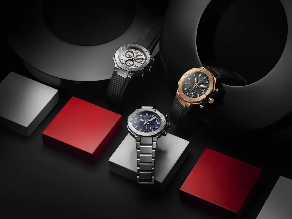 The T-Sport models offer a wide range of functions: chronographs, tachymetric scales, screw-down crowns, water resistance up to 300 m, and all in robust cases made of stainless steel, ceramic or titanium. Distinctive dials and sporty straps in rubber, textile or metal guarantee comfort and durability during intensive use.