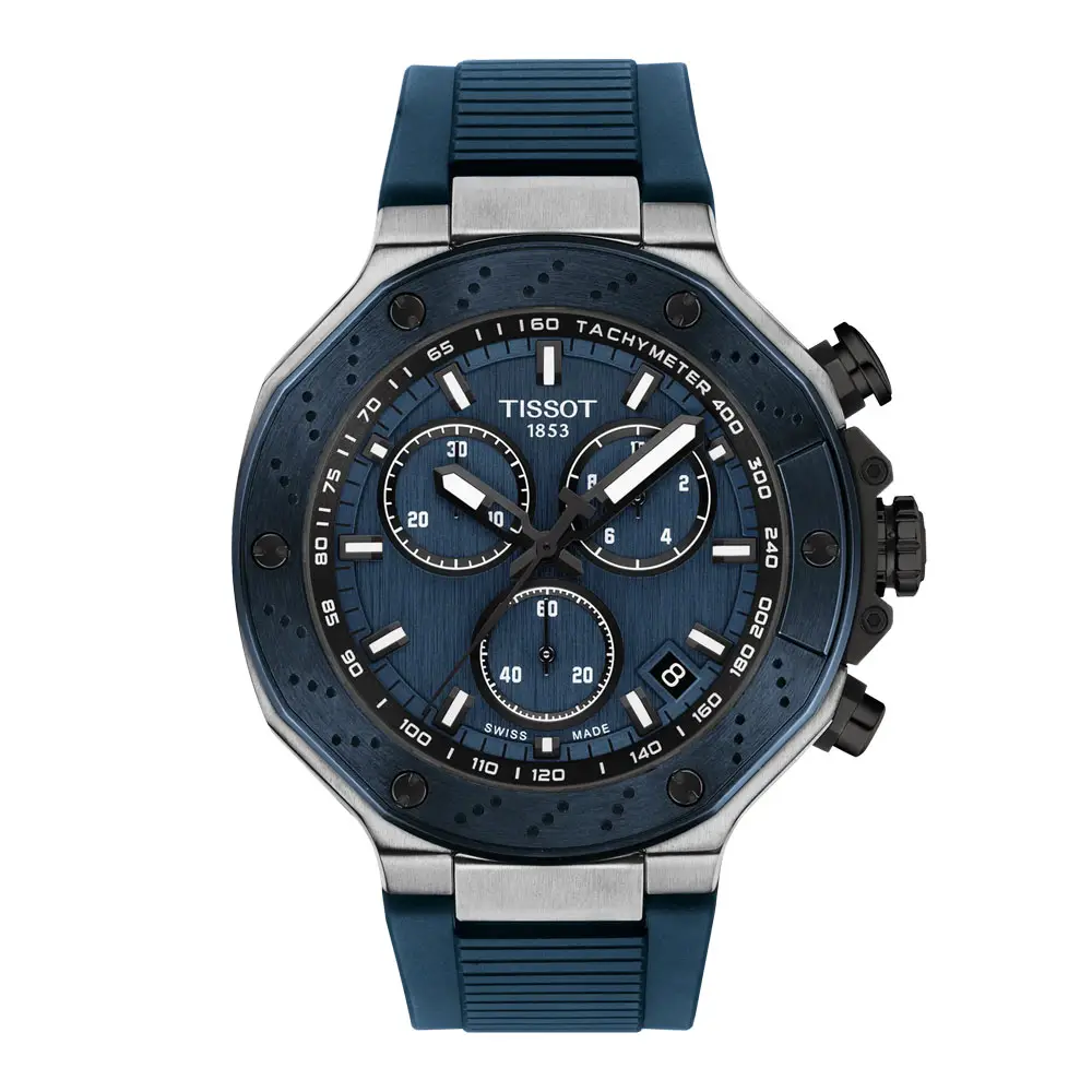 The Tissot T-Race collection takes inspiration from the world of motorsport and translates it into watch design through technical shapes, contrasting details and striking proportions. The watches have a dynamic, masculine and sporty-technical feel, while retaining the legibility and functional logic of chronographs. The T-Race aesthetic references elements of motorcycle and automobile racing technology.