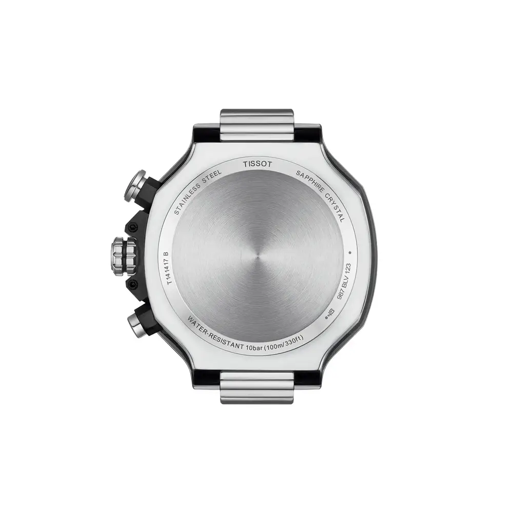 The Tissot T-Race Chronograph T141.417.11.031.00 is a bold men’s sports chronograph from the T-Sport collection, inspired by the dynamic aesthetics of motorsport and Tissot’s long-standing connection with MotoGP. Its silver dial with three sub-dials, contrasting hands and luminous markers ensures excellent legibility in low light and fast conditions.
