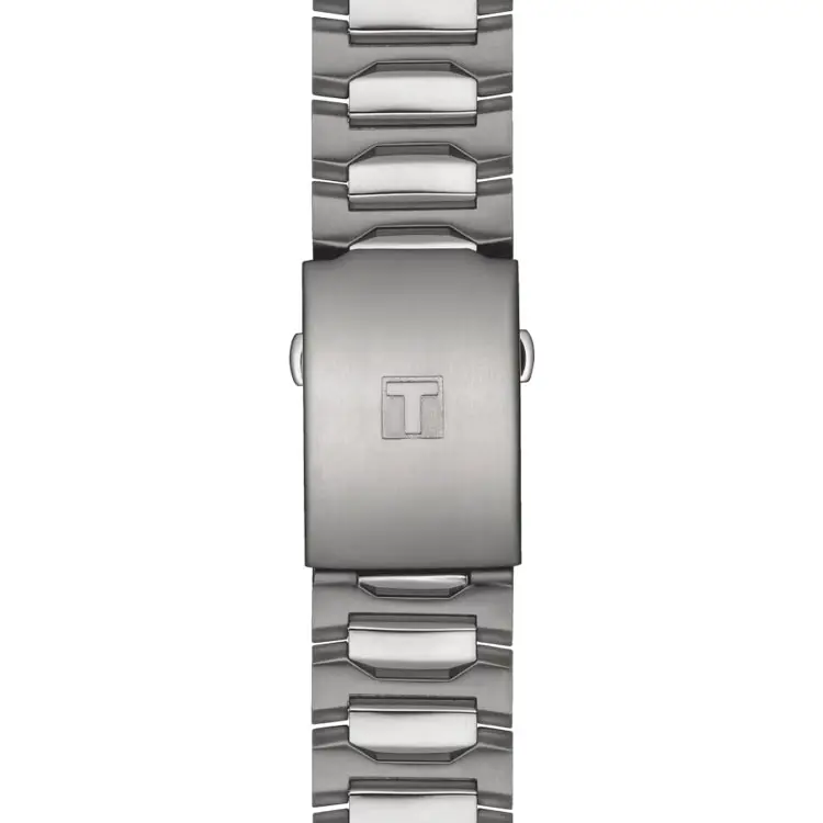 The elegant silver-tone titanium bracelet with a folding clasp perfectly matches the case, underlining the sporty yet elegant character of the model. With a water resistance of 10 ATM (100 m), the watch is a reliable companion for both everyday wear and sports activities.