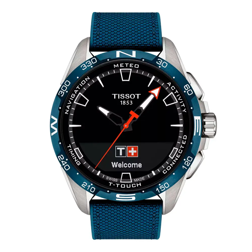 The Tissot T-Touch Connect Solar T121.420.47.051.06 combines cutting-edge technology with the finest Swiss watchmaking tradition. Its bold 47.5mm titanium case paired with a ceramic bezel ensures exceptional durability and a sleek, modern appearance. The touch-sensitive sapphire crystal allows intuitive control while protecting the sophisticated hybrid system within.