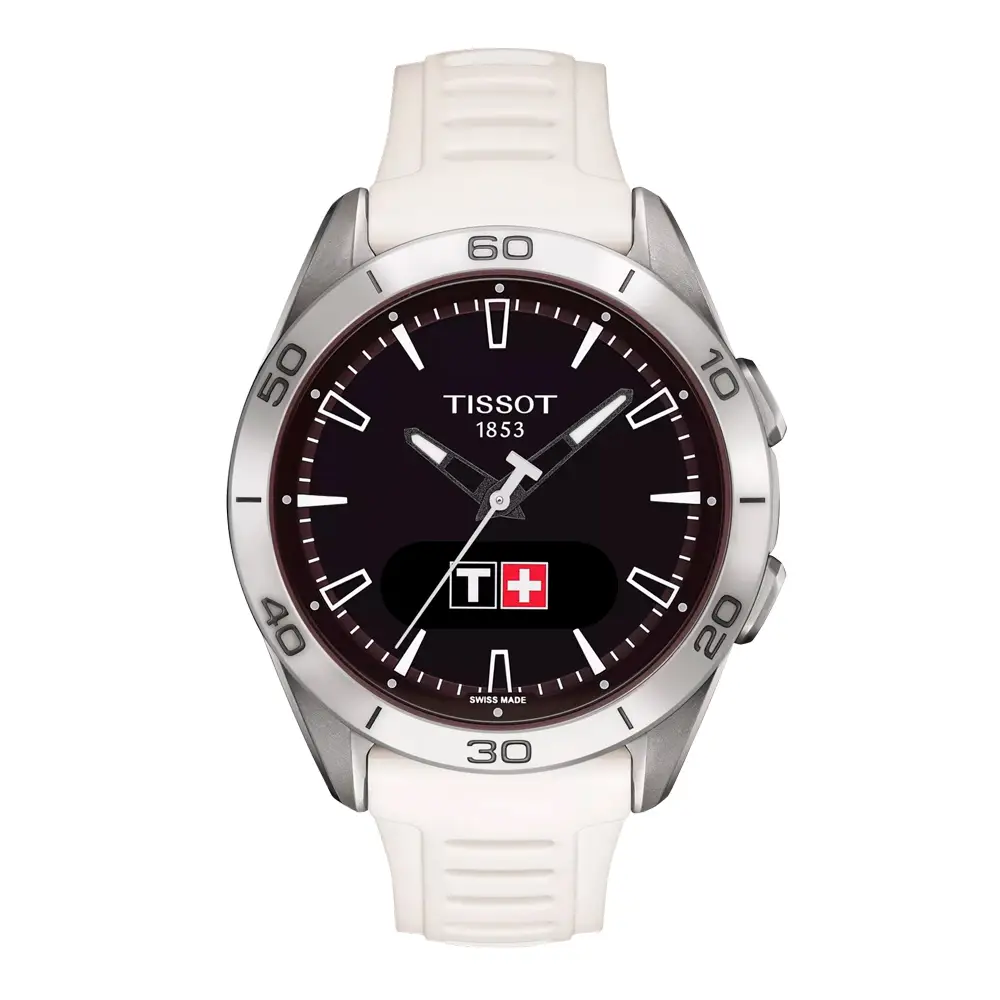 The Tissot T-Touch Connect Sport is a smart sports model that combines the latest technology with elegant design and Swiss precision. The 43.75 mm round titanium case with a ceramic bezel ensures low weight, high durability, and a modern look. The dial is protected by a scratch-resistant sapphire crystal.