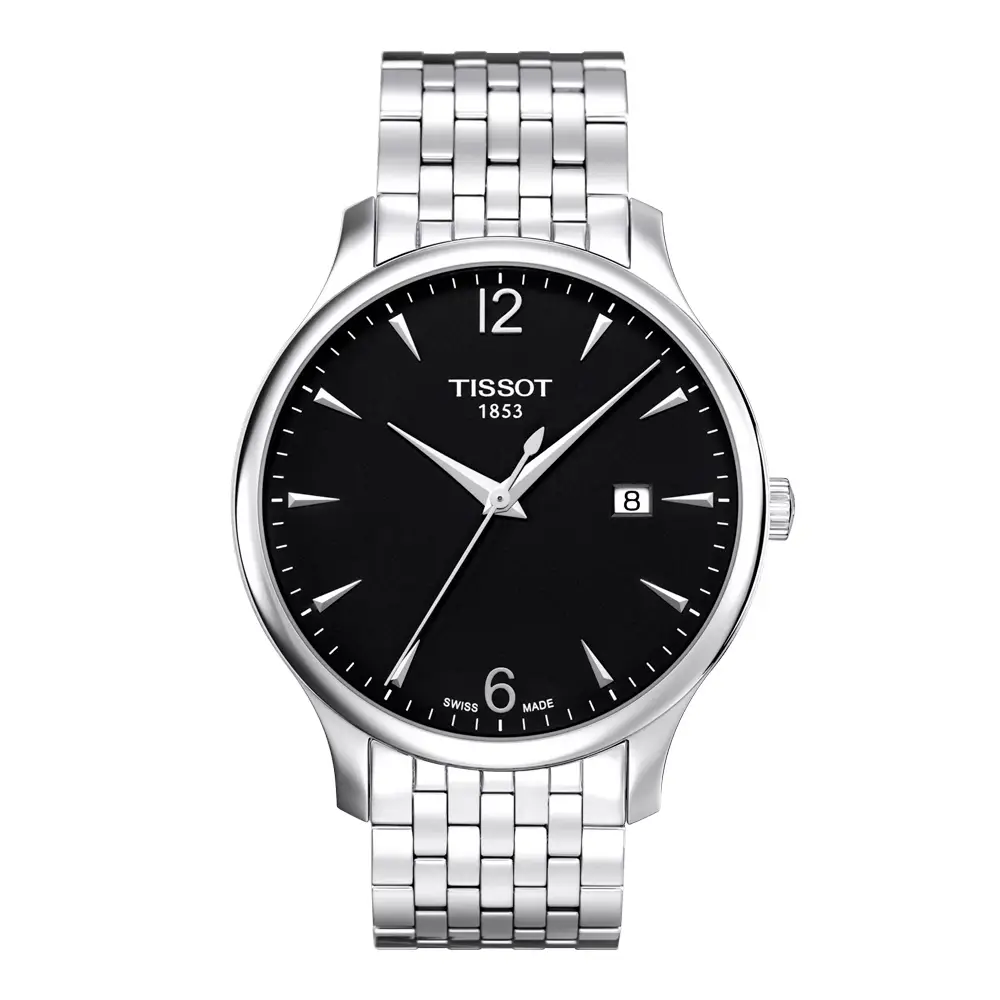 Tissot Tradition Quartz T063.610.11.057.00 combines classic elegance, modern design, and Swiss precision. Its 42 mm stainless-steel case is paired with a black textured dial, featuring slim indexes and polished hands that give the watch a timeless and refined appearance.