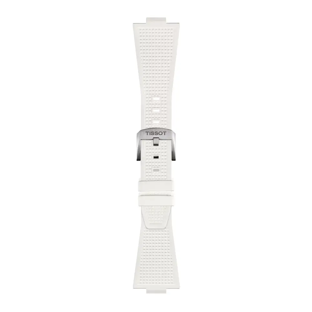 The original Tissot white rubber strap T852.048.463 is designed specifically for PRX 40 mm watches, delivering a fresh, modern, and sporty look. Made from high-quality synthetic material, it is durable, flexible, and ideal for both everyday wear and an active lifestyle.