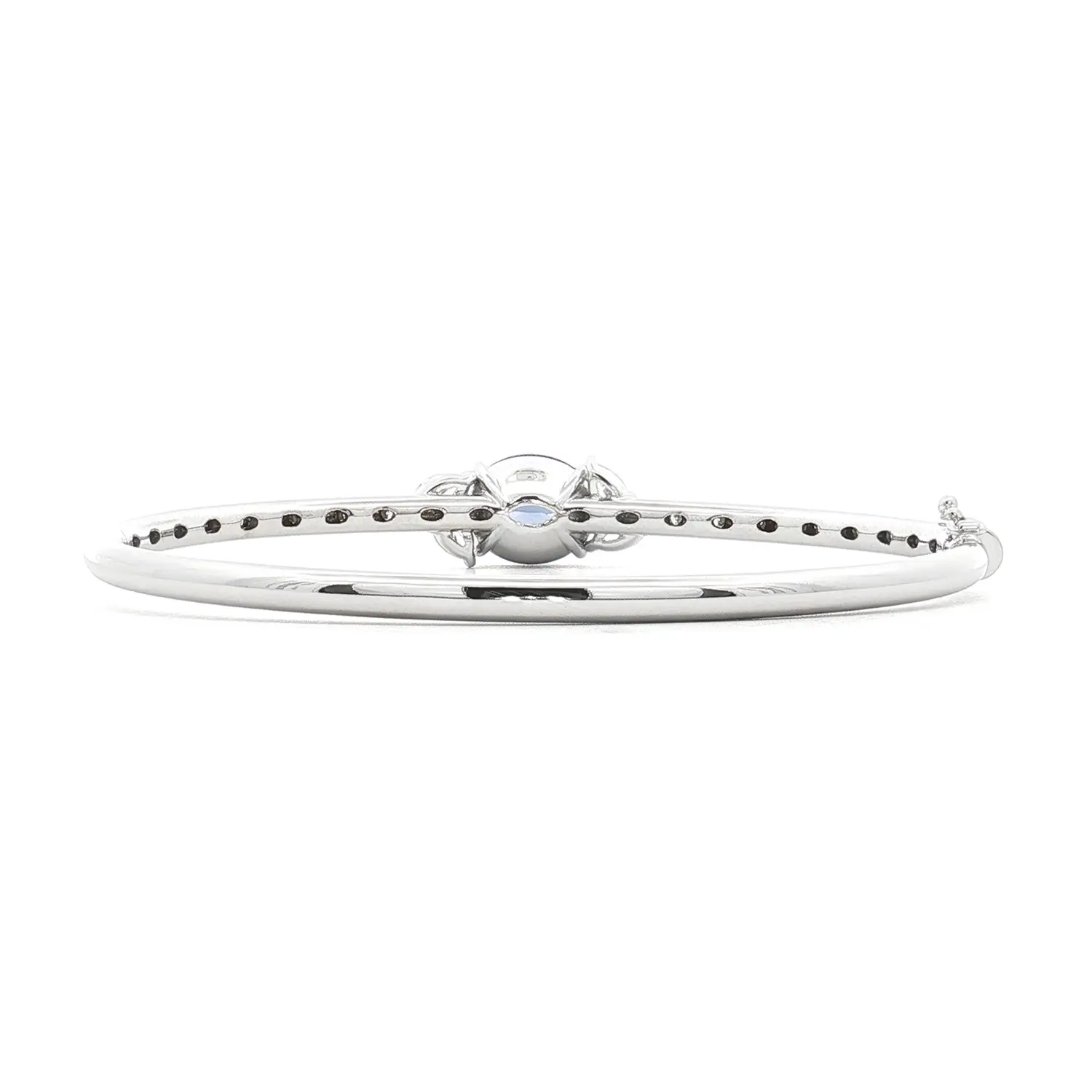 Crafted from 18K white gold, the bracelet is adorned with a delicate line of diamonds along the band, enhancing its luminous allure. A perfect balance of modern minimalism and classic luxury, this piece is ideal for women who appreciate exceptional craftsmanship, subtle color harmony, and effortless refinement.