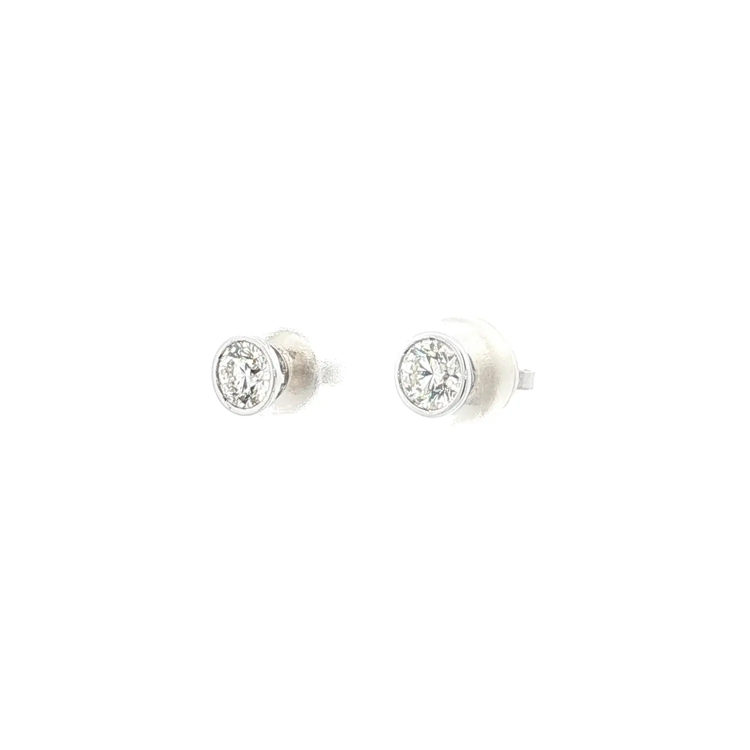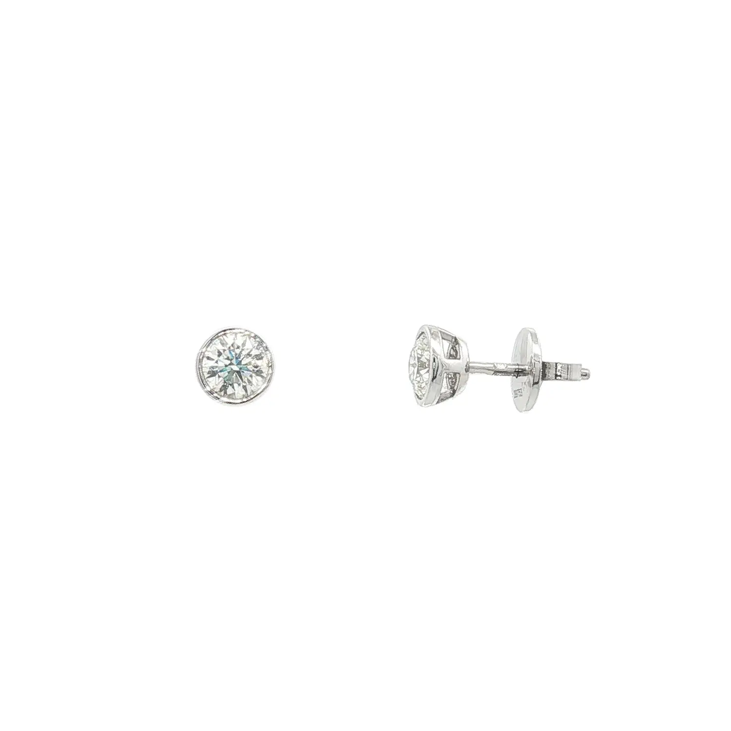 These white gold earrings featuring 1.00 carat of brilliant-cut diamonds embody timeless simplicity and radiant beauty. Each diamond is securely set in a smooth bezel that accentuates its sparkle while offering protection and everyday comfort. Their minimalist design allows the brilliance of the stones to take center stage, creating an effect that is both refined and effortlessly luxurious.