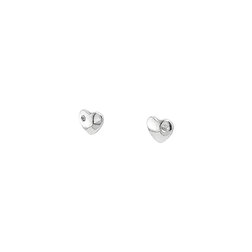 White Gold Heart Earrings with Zircons - Sparkling Symbol of Love