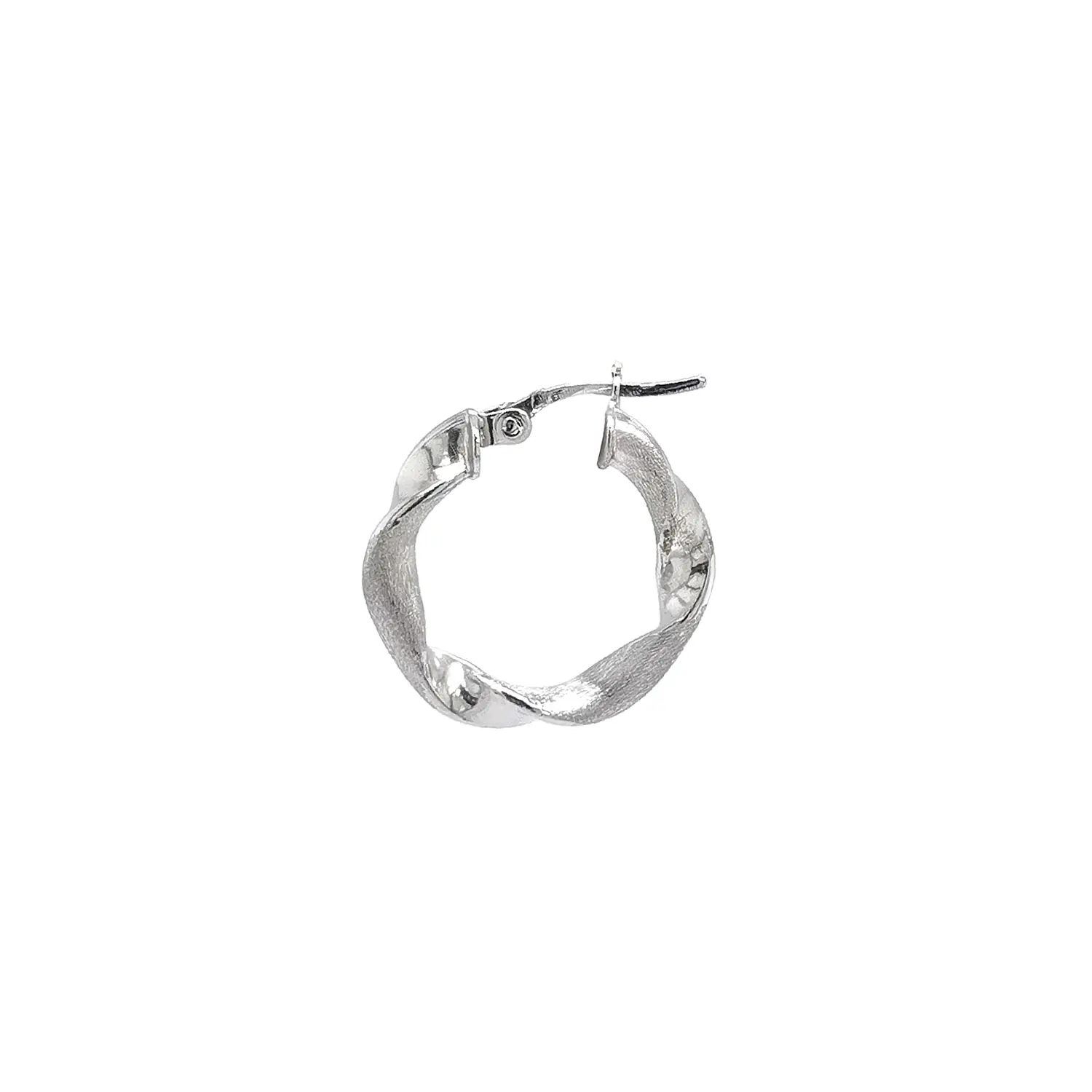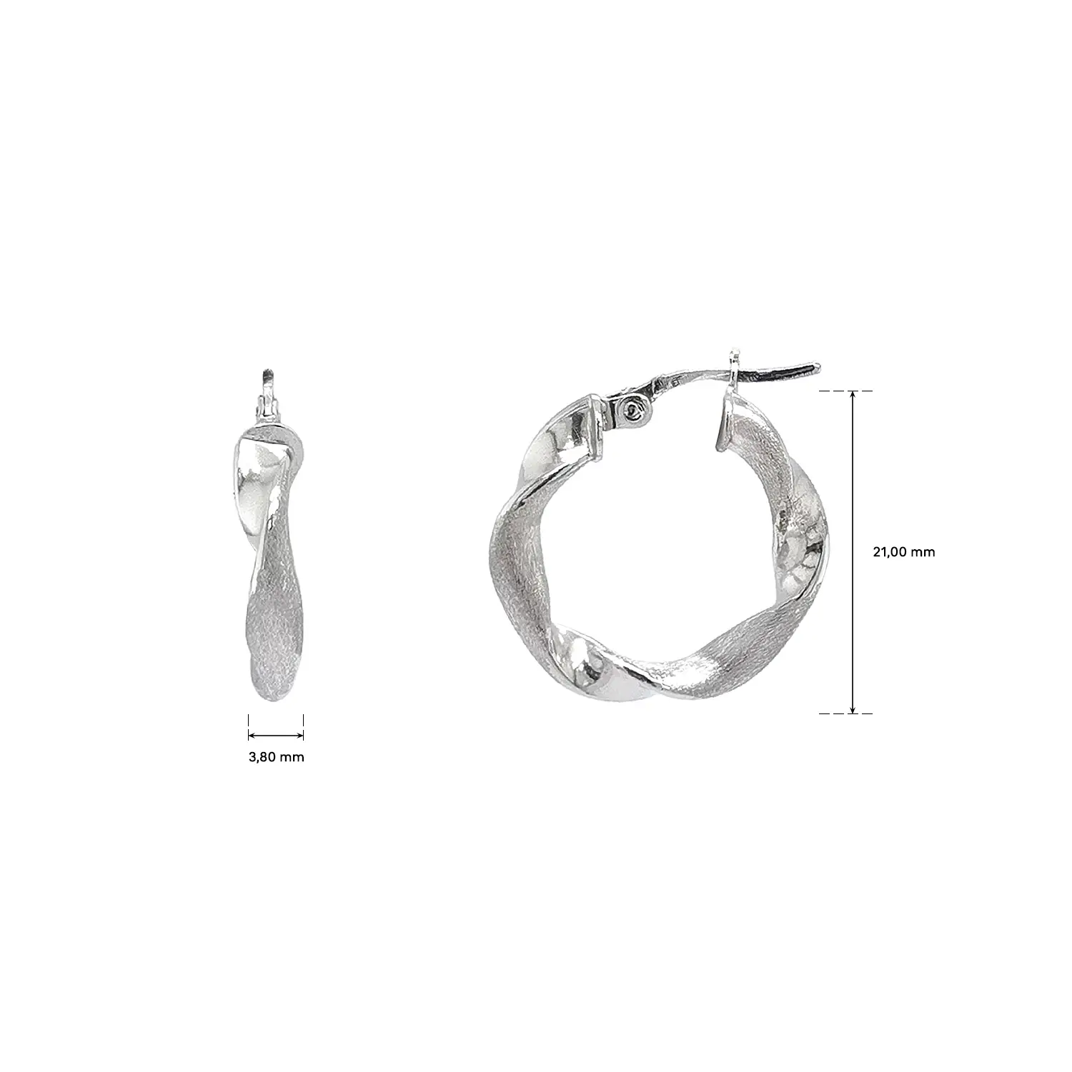 The timeless hoop silhouette is enriched with a sculpted relief and gentle twist, while the secure latch-back closure ensures comfortable all-day wear. The cool tone of white gold pairs effortlessly with both everyday outfits and elegant evening styling.