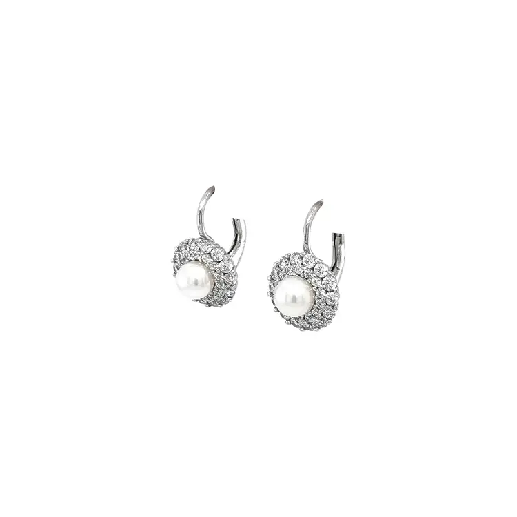 White Gold Pearl Earrings