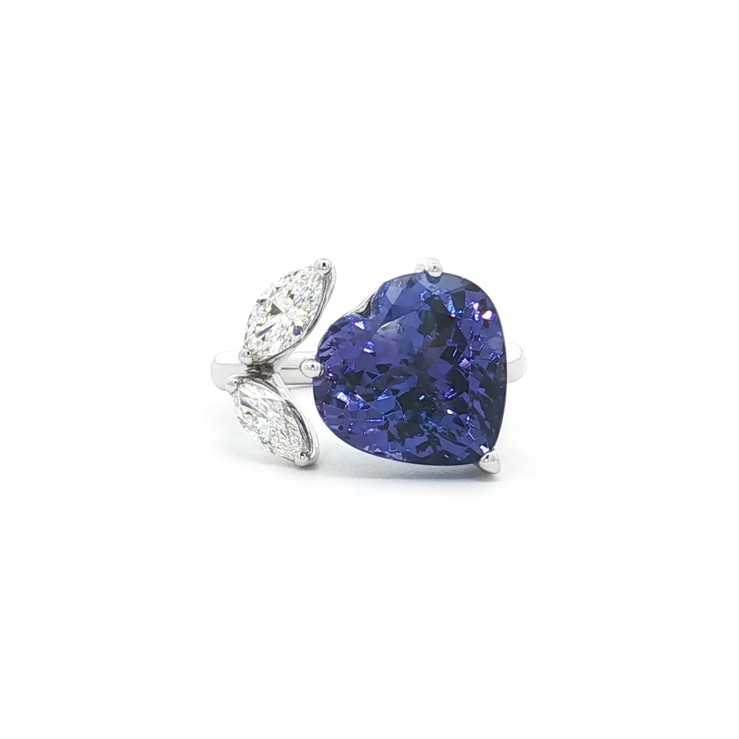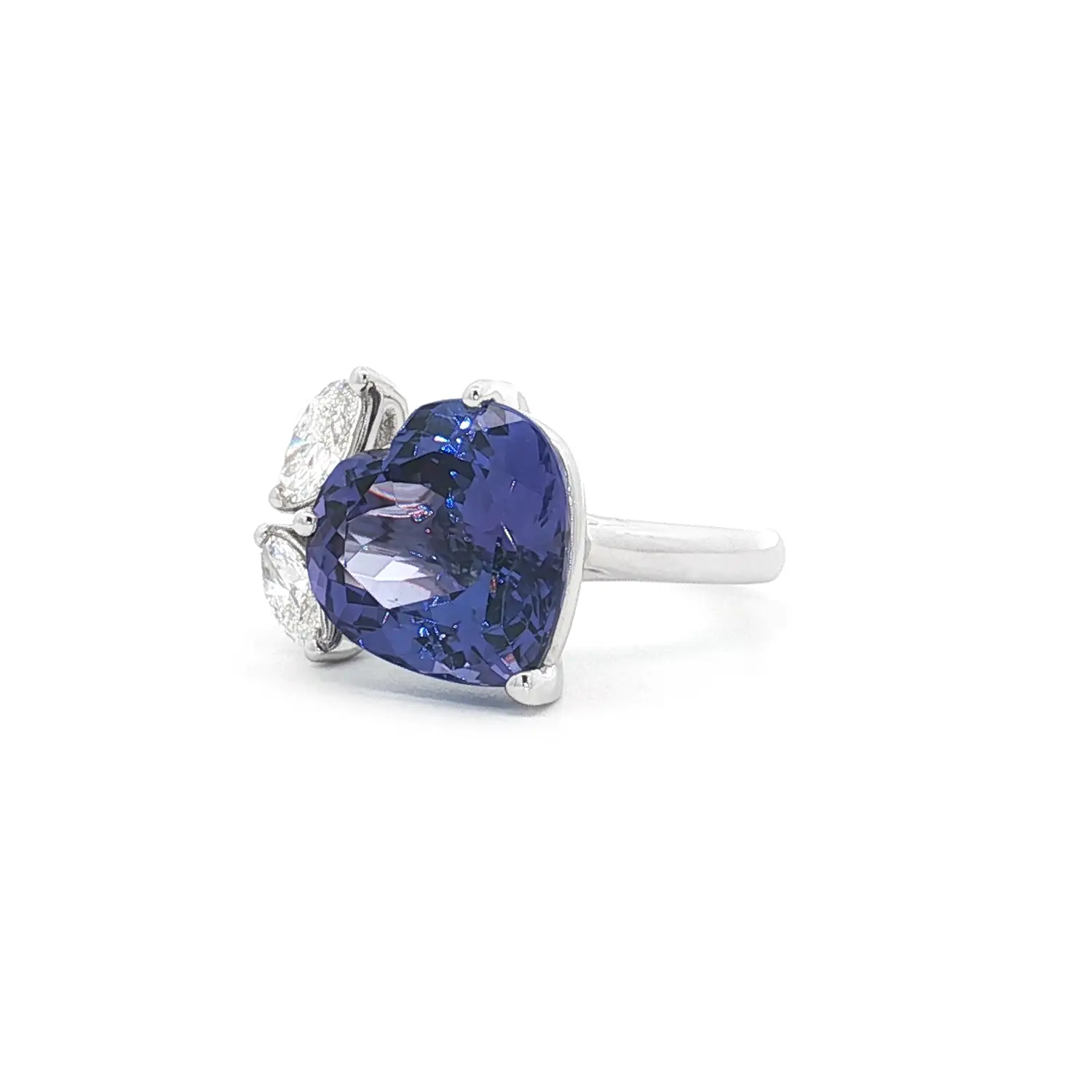White Gold Ring with Heart-Shaped Tanzanite and Diamonds