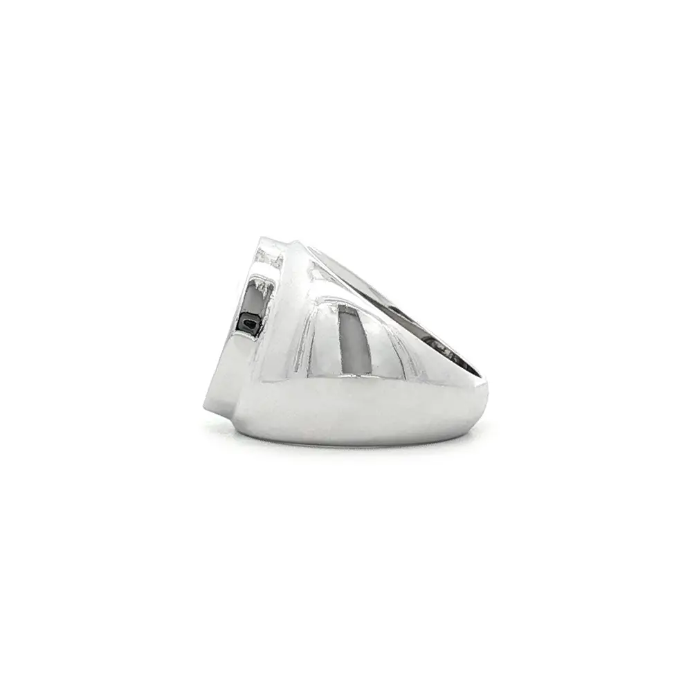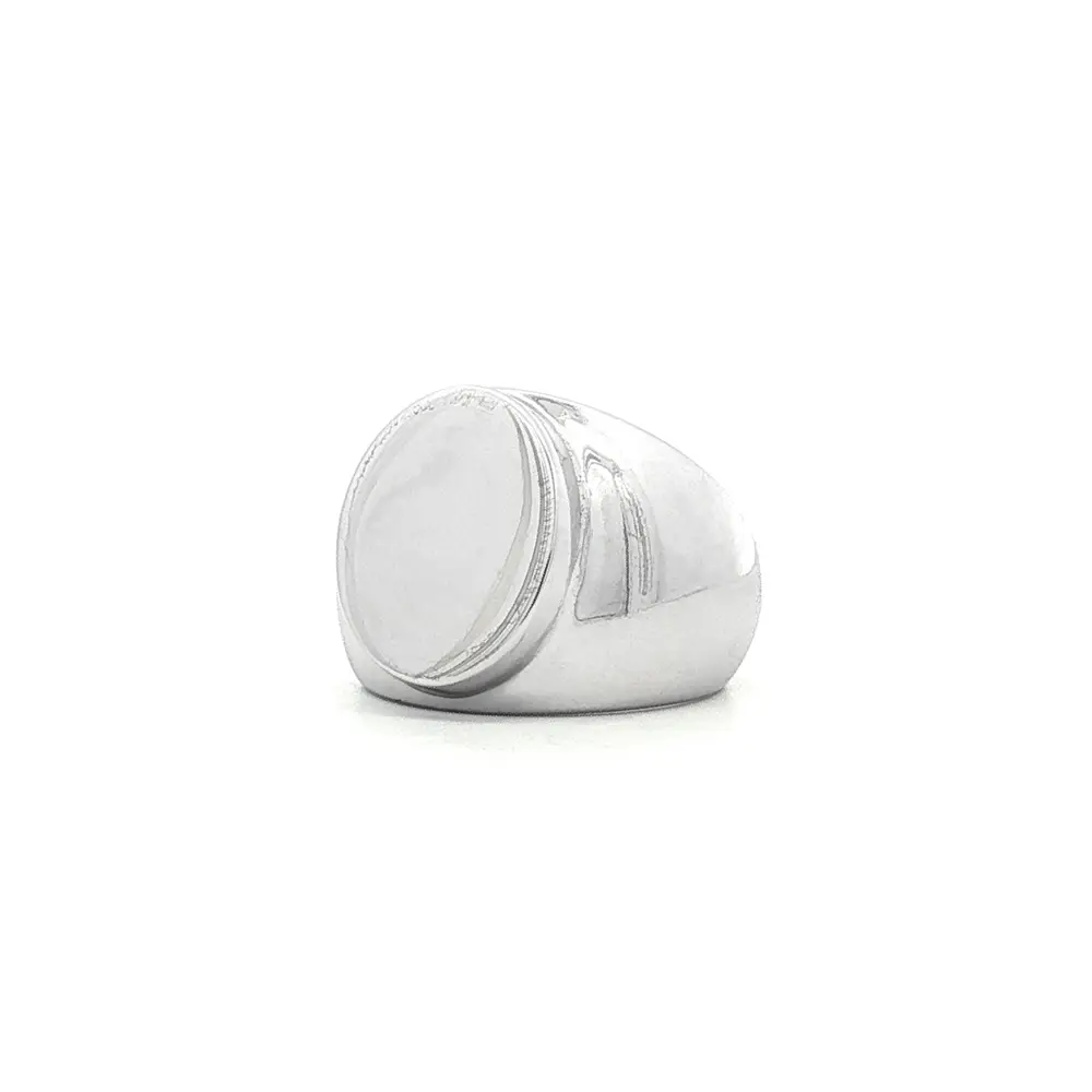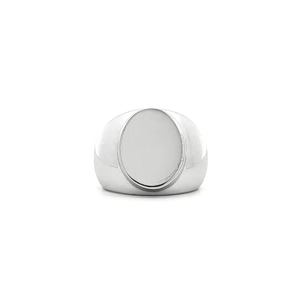 This masculine signet ring is crafted from 14-karat white gold (585/1000) and combines timeless elegance with contemporary minimalism. The polished oval top offers the perfect surface for personal engraving, whether it's initials, a family crest, or a symbolic motif.