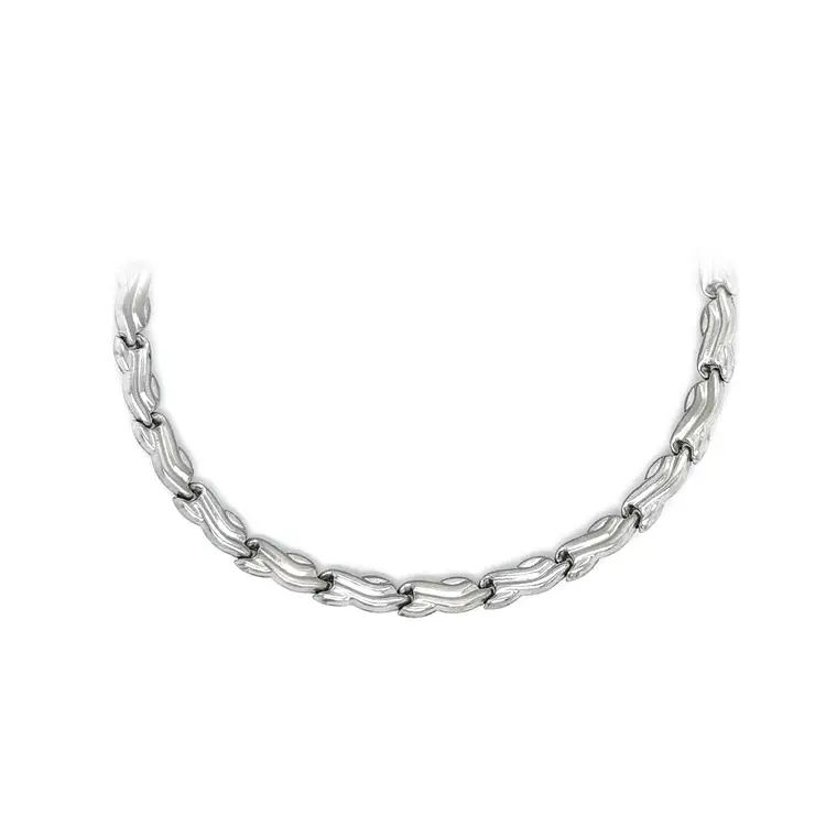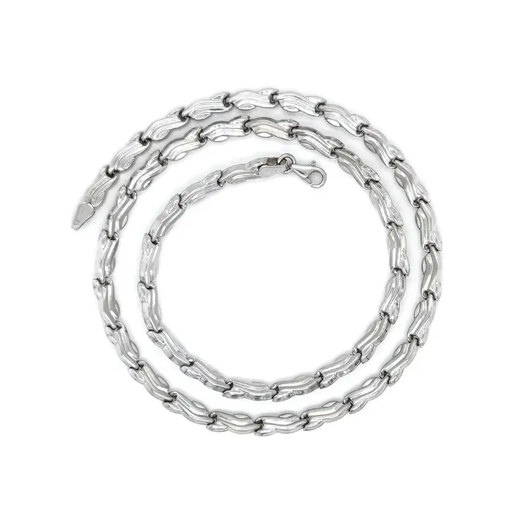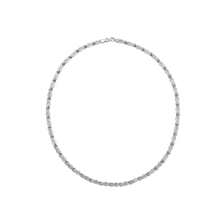 This women’s necklace is a refined expression of timeless elegance and expert craftsmanship. Crafted from 14kt white gold (585/1000) and finished with a high-polish surface, it radiates a luminous sheen and sophisticated character. Its clean, graceful lines reflect a modern aesthetic with an emphasis on quality and detail.