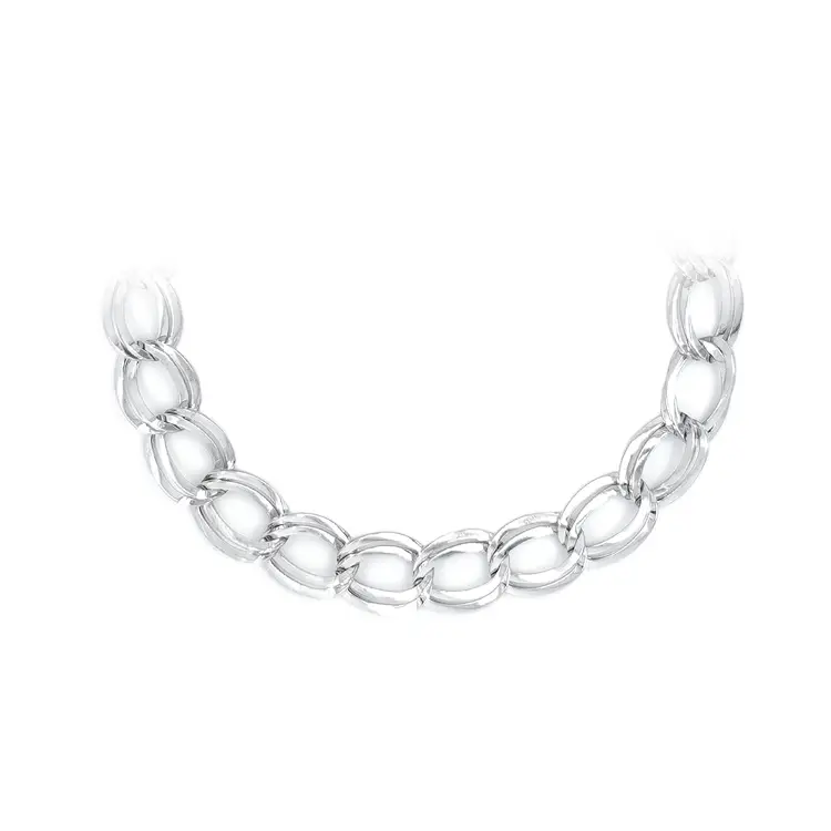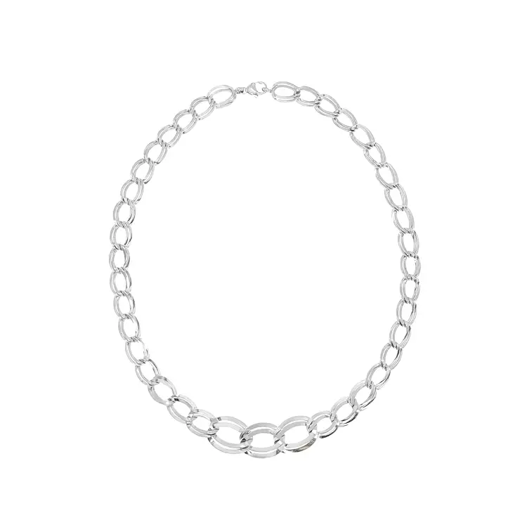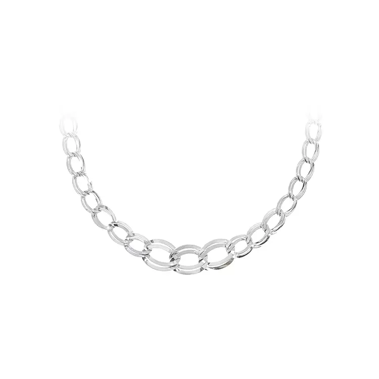 With a length of 45 cm, the necklace rests naturally along the neckline, subtly enhancing the décolletage. Its balanced proportions ensure comfortable wear while maintaining a clean, sophisticated presence. The polished white gold beautifully reflects light, adding a gentle yet luxurious glow.