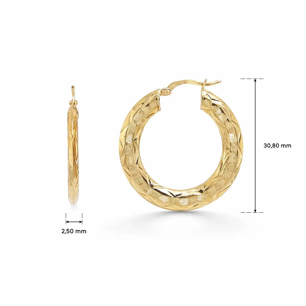 Yellow Gold Hoop Earrings with Engraved Pattern
