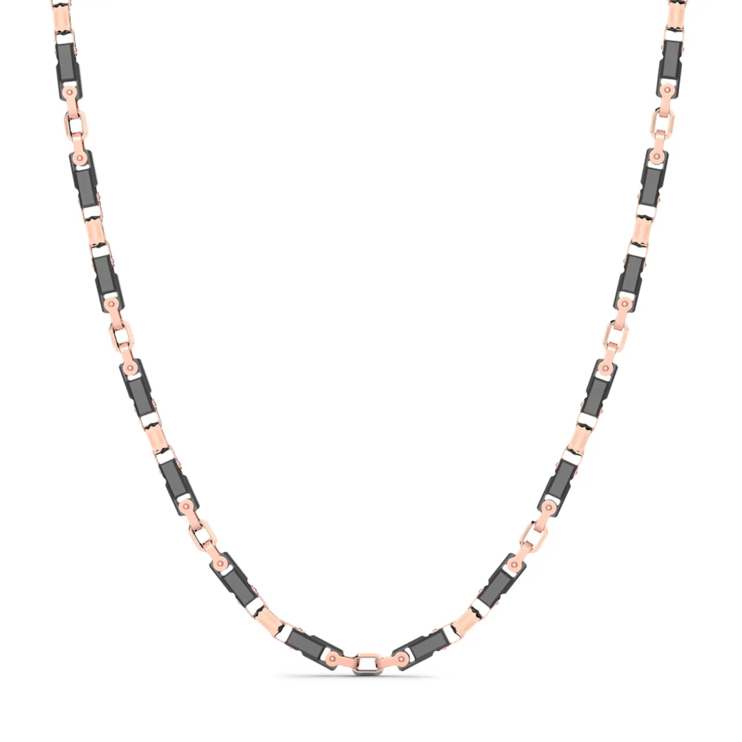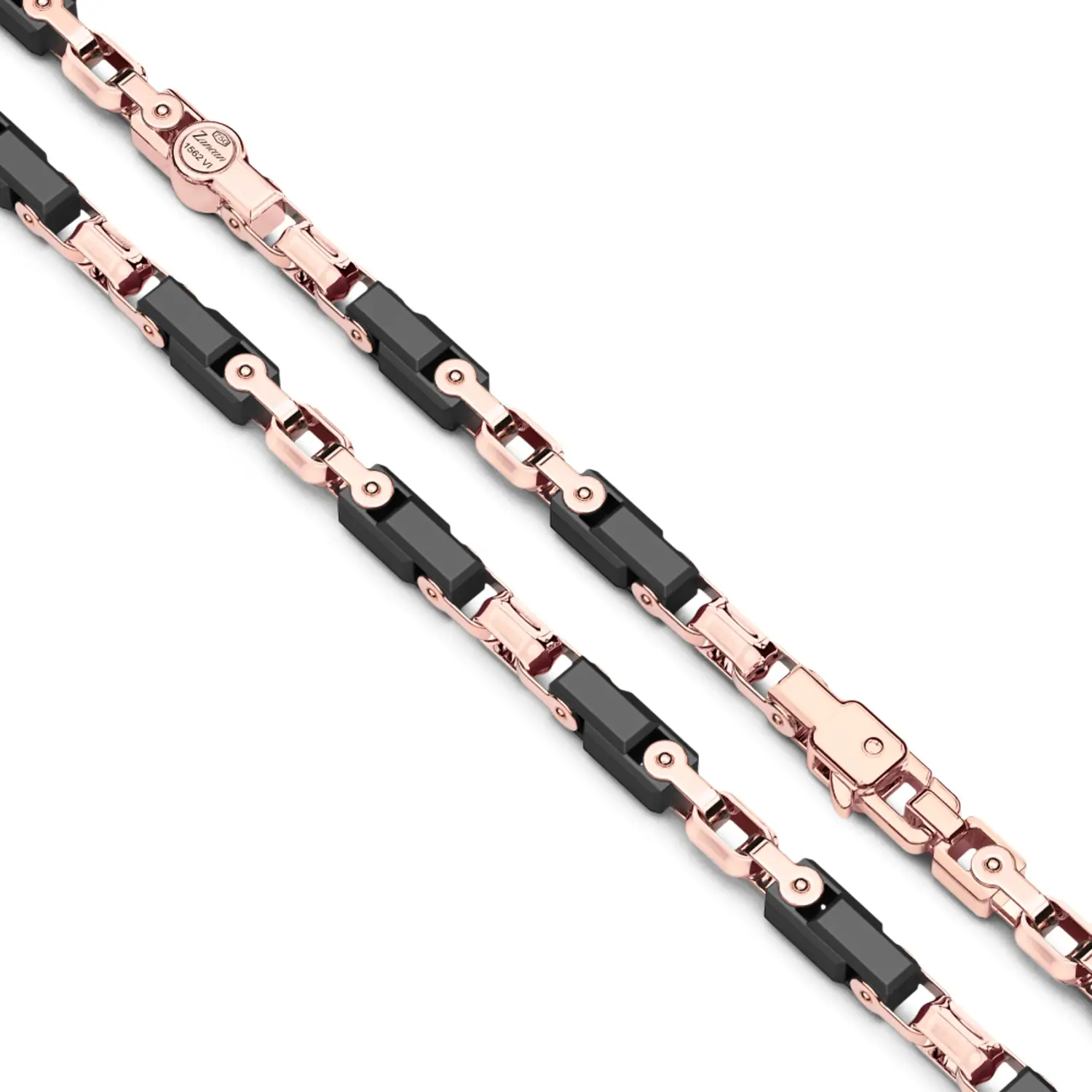 The Zancan Ceramikgold KC061R-N-60 necklace combines traditional Italian jewellery craftsmanship with a bold, contemporary design. The chain construction is made of 18-karat gold combined with contrasting black ceramic, highlighting the technical and architectural character of the piece. Geometric links with precise connections create a strong visual identity, making the necklace suitable for everyday wear as well as formal occasions.