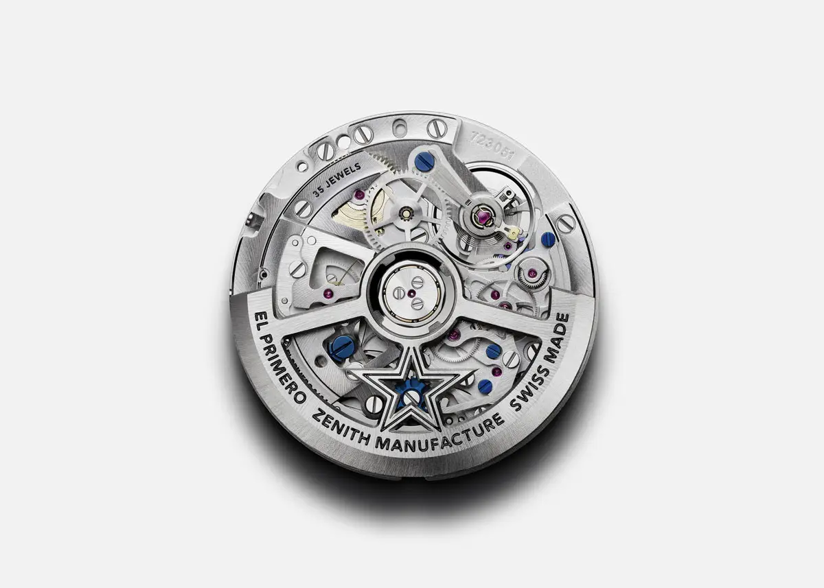 Inside, the renowned El Primero automatic movement beats at a high frequency of 36,000 vibrations per hour (5 Hz), offering exceptional accuracy and the ability to measure time to the tenth of a second. A power reserve of approximately 60 hours ensures the watch continues running even if not worn for a few days.